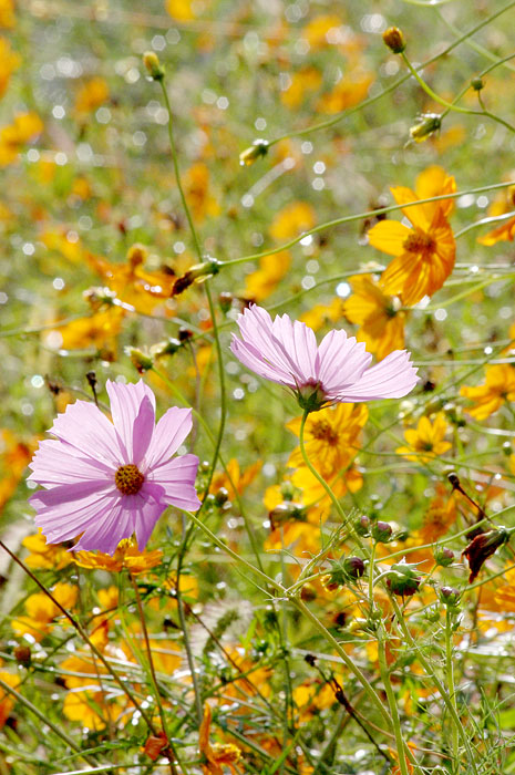 長雨の中の束の間の晴れ間、日差しを求めて近所の公園に寄る。コスモス、しなだれてました。もうかなり散っている・・・